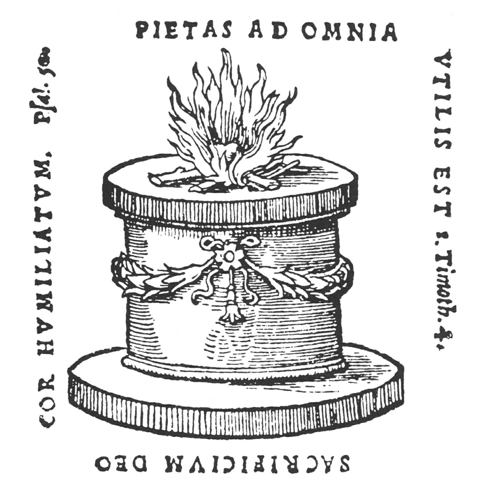 Как знак приносимой клятвы присутствует в эмблеме «Купидон при алтаре клянется перед Юпитером и Венерою, кои тому смеются.» СЭ,с.240.