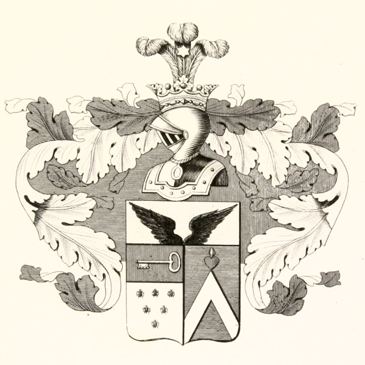 X-141 Герб Комарова. В золотой вершине щита изображены два черныя орлиныя распростертыя крыла. В нижней пространной части, в правом красном поле горизонтально положен серебряный ключ и под ним в серебряном поле шесть комаров, означенные 3, 2 и 1; а в левом голубом поле, на серебряном стропиле находится сердце с пламенем. Щит увенчан дворянскими шлемом и короною с строусовыми перьями, на коих золотая шестиугольная звезда. Намет на щите золотый, подложенный голубым и красным. Иван Комаров в службу вступил в 1781 году и происходя чинами, в 1799 году Всемилостивейше пожалован Коллежским Ассессором и находясь в сем чине, 1829 года Августа в 4 день пожалован на дворянское достоинство дипломом, с коего копия хранится в Герольдии.