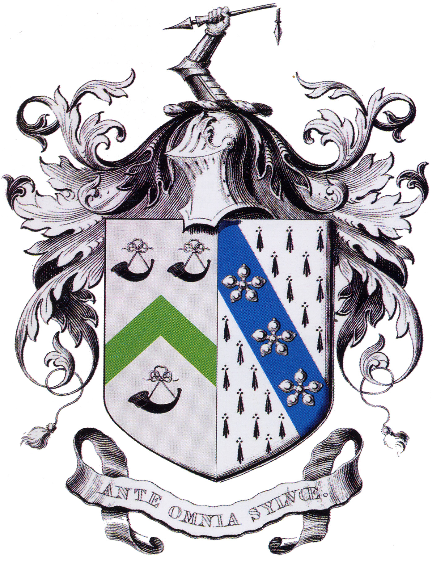 «Рассечённый: в первом серебряном поле зелёное стропило, сопровождаемое тремя охотничьими рогами (2,1) чёрными на серебряных лентах; во втором поле горностая синяя перевязь справа, обременённая тремя серебряными пятилистниками».